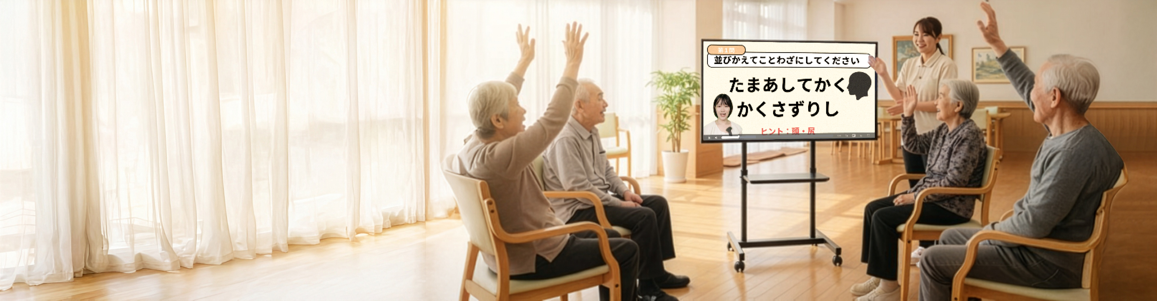1,000以上の映像コンテンツで、利用者様の笑顔が増える。毎日のレクの準備・手間を劇的に減らします。