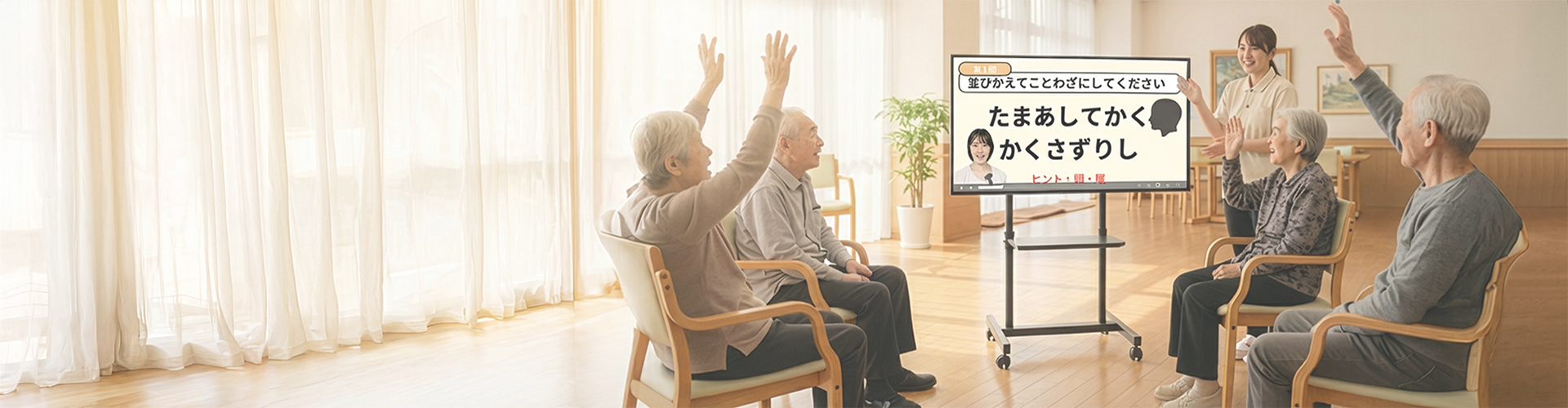 1,000以上の映像コンテンツで、利用者様の笑顔が増える。毎日のレクの準備・手間を劇的に減らします。
